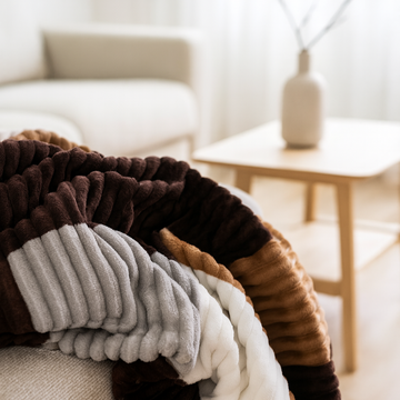 The Vara micro-plush blanket collection is created using a special weave that gives the soft surface a ribbed texture and checkered design. Every detail emphasizes softness and warmth, while the visual rhythm transforms the blanket into an aesthetic addition to the home.